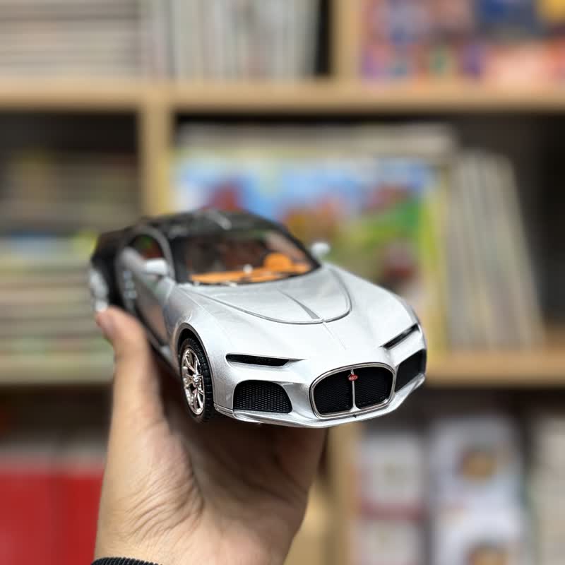 ماشین بوگاتی فلزی عقبکش درب بازشو چراغدار نقره سرم